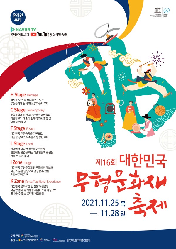 ‘Á¦16ȸ ´ëÇѹα¹ ¹«Çü¹®ÈÀç ÃàÁ¦’¿¡¼´Â ‘Çѱ¹ÀÇ ¼Ò¸®¿Í ¸öÁþ’ÀÌ ´ã±ä ´ëÇѹα¹ ¹®ÈÀ¯»êÀ» 4°¡Áö °ø¿¬ ¹«´ë·Î ±¸¼ºÇßÀ¸¸ç, ¹«Çü¹®ÈÀç ¸íÀεéÀÇ ÀÛǰÀ» ¼Ò°³ÇÏ´Â ¿Â¶óÀÎ Àü½Ã°ü¶÷°ú üÇèÀÌ ÃàÁ¦¸¦ ´Ù¾çÇÏ°Ô ²Ù¸çÁÙ ¿¹Á¤ÀÌ´Ù.