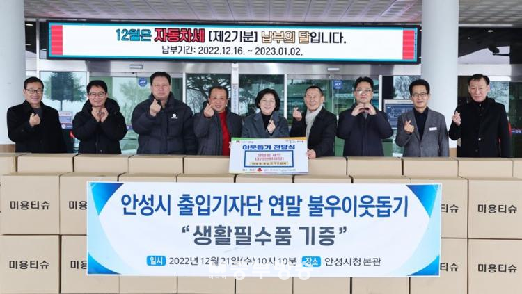 ±èº¸¶ó ¾È¼º½ÃÀåÀº Áö³ 21ÀÏ ¾È¼º½ÃÃâÀÔ±âÀÚ¿¬ÇÕȸ(ȸÀå Áø¿ëº¹)°¡ 320¸¸¿øÀÇ »ýȰÇʼöǰÀ» ¾È¼º½Ã¿¡ Àü´ÞÇß´Ù°í ¹àÇû´Ù.