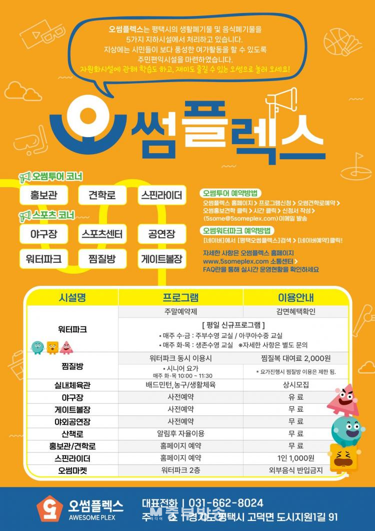 ÆòÅÿ¡ÄÚ¼¾ÅÍ ³» ÁÖ¹ÎÆíÀͽü³ ¿À½æÇ÷º½º´Â »ýȰÆó±â¹°Ã³¸® ½Ã¼³À» ÁöÇÏ¿¡ ¼³Ä¡Çϰí, Áö»ó¿¡´Â ¿µÇâ Áö¿ª Áֹΰú ÆòÅýùÎÀÌ ÀÌ¿ëÇÒ ¼ö ÀÖµµ·Ï ģȯ°æ °ø¿ø°ú ´Ù¾çÇÑ Ã¼À°½Ã¼³À» °®Ãß°í ÀÖ´Ù.