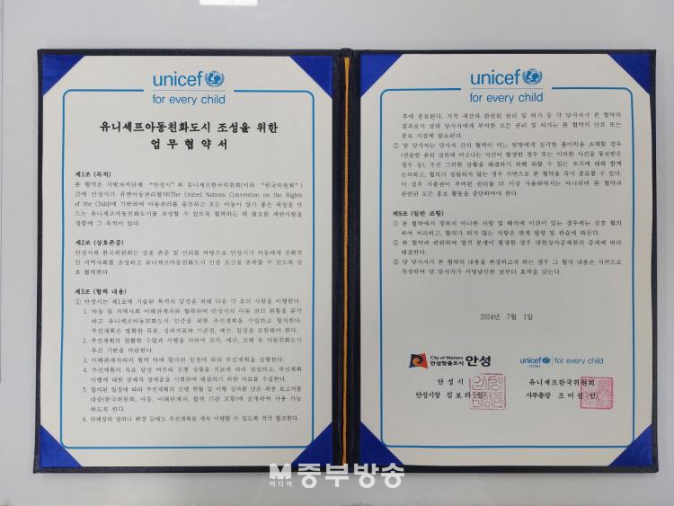 À̹ø Çù¾àÀº ¾È¼º½Ã¿Í À¯´Ï¼¼ÇÁÇѱ¹À§¿øÈ¸´Â ¾Æµ¿ ±Ç¸® º¸È£¿Í ÁõÁøÀ» À§ÇÑ »óÈ£ Çù·Â ü°è¸¦ ±¸ÃàÇϱâ À§ÇØ ¸¶·ÃµÆ´Ù.
