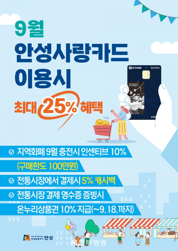 ¶ÇÇÑ ¿À´Â 11ÀϺÎÅÍ ¿¹»ê ¼ÒÁø ½Ã±îÁö ¾È¼º½Ã ÀüÅë½ÃÀå 4°÷(¾È¼ºÁß¾Ó½ÃÀå, ¾È¼º¸ÂÃã½ÃÀå, Á×»ê½ÃÀå, ÀÏÁ×½ÃÀå)¿¡¼ ¾È¼º»ç¶ûÄ«µå·Î °áÁ¦ÇÒ °æ¿ì 5% ij½Ã¹é ÇýÅÃÀ» Á¦°øÇÒ ¿¹Á¤ÀÌ´Ù.