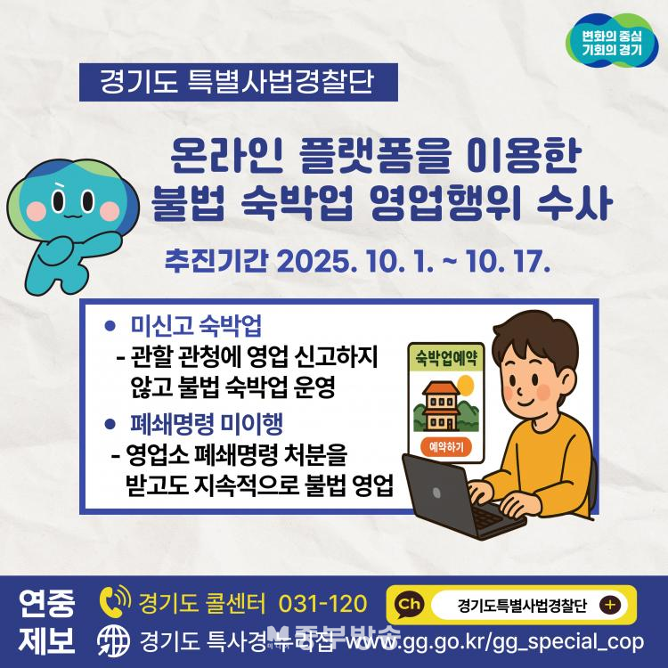 ±âÀ̵µ °æ±âµµ Ưº°»ç¹ý°æÂû´ÜÀåÀº ¡°ºÒ¹ý ¼÷¹Ú¾÷¼Ò´Â À̿밴ÀÇ »ý¸íÀ» ´ãº¸·Î ºÒ¹ý ¿µ¾÷À» ÇÏ´Â ¸¸Å À̹ø ´Ü¼ÓÀ» ÅëÇØ ºÒ¹ý ÇàÀ§¸¦ »Ñ¸® »Ì°í ¾ÈÀüÇÑ ¼÷¹Ú ¹®È¸¦ Á¶¼ºÇÒ ¿¹Á¤¡±À̶ó¸ç ¡°ºÒ¹ýÇàÀ§´Â ´ÜÈ£ÇϰÔ, µµ¹ÎÀÇ ¾ÈÀü ¾Õ¿¡¼± ÇÑ Ä¡µµ ¹°·¯¼Áö ¾Ê°Ú´Ù¡±°í ¸»Çß´Ù.