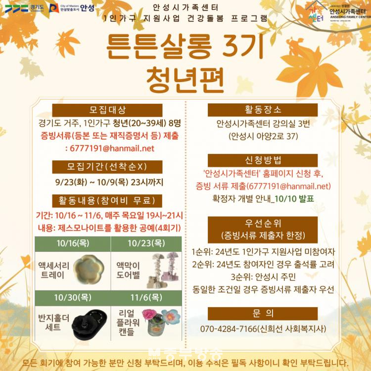 Âü¿© ½ÅûÀº ¾È¼º½Ã°¡Á·¼¾ÅÍ È¨ÆäÀÌÁö¿¡¼ °¡´ÉÇϸç, ÀÚ¼¼ÇÑ »çÇ×Àº ȨÆäÀÌÁö ¶Ç´Â È«º¸ Æ÷½ºÅ͸¦ ÅëÇØ È®ÀÎÇÒ ¼ö ÀÖ´Ù.