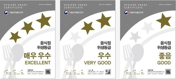 À½½ÄÁ¡ À§»ý µî±ÞÁ¦ ÁöÁ¤¾÷¼Ò¶õ À§»ý °ü·Ã ºÐ¾ß¿¡ ´ëÇØ ½ÄǰÀǾàǰ¾ÈÀüóÀÇ Æò°¡¸¦ ¹ÞÀº ÈÄ 3´Ü°è µî±Þ(¸Å¿ì ¿ì¼ö, ¿ì¼ö, ÁÁÀ½)À» ºÎ¿©¹ÞÀº À½½ÄÁ¡À» ¸»ÇÑ´Ù.