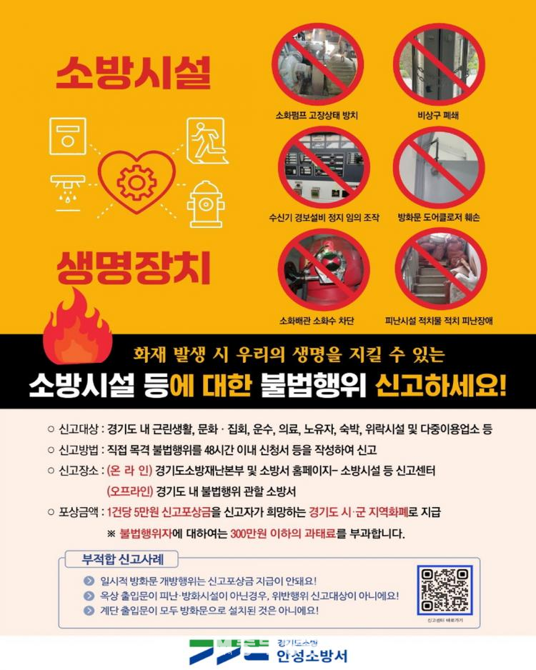 ¡®¼Ò¹æ½Ã¼³ µî ºÒ¹ýÇàÀ§ ½Å°íÆ÷»óÁ¦¡¯´Â ºñ»ó±¸ Æó¼â, Çdz½Ã¼³ ¹°°Ç ÀûÄ¡, ¼Ò¹æ½Ã¼³ Àü¿ø Â÷´Ü ¹× °íÀå ¹æÄ¡ µî ¾ÈÀüÀ» À§ÇùÇÏ´Â ºÒ¹ýÇàÀ§¸¦ ½Ã¹ÎÀÌ Á÷Á¢ ½Å°íÇÏ¸é Æ÷»ó±ÝÀ» Áö±ÞÇÏ´Â Á¦µµ´Ù. À̸¦ ÅëÇØ ÀÚÀ²ÀûÀÎ ¾ÈÀü°ü¸® ¹®È¸¦ È®»êÇϰí ÈÀç·Î ÀÎÇÑ ÀθíÇÇÇØ¸¦ ¿¹¹æÇÏ´Â µ¥ ¸ñÀûÀÌ ÀÖ´Ù.