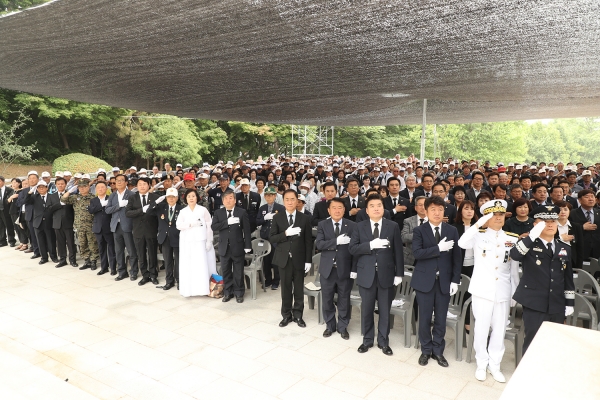 [ÆòÅÃ=¾È¼Áø ±âÀÚ] ÆòÅýÃ(½ÃÀå Á¤Àå¼±)´Â Á¦64ȸ ÇöÃæÀÏÀ» ¸Â¾Æ Á¶±¹À» À§ÇØ ¸ñ¼ûÀ» ¹ÙÄ¡½Å ¼ø±¹¼±¿°ú È£±¹¿µ·ÉµéÀ» Ã߸ðÇϱâ À§ÇØ Áö³ 6ÀÏ ÆòÅÃÈ£ ÇöÃæÅ¾¿¡¼ Ãß³ä½ÄÀ» °ÅÇàÇß´Ù.